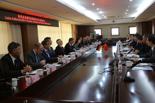5月16日下午,德国雷根斯堡市副市长迪特·达明格带领该市政府代表团一行15人来我校访问。校长王亚军在图书科技楼会议室会见了迪特·达明格一行,副校长张伟星以及国际交流与合作处、国际学院、建筑学院负责人等参加座谈。