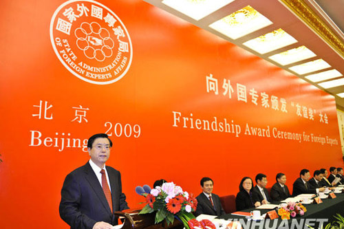 29日下午,2009年度“友谊奖”颁奖大会在北京人民大会堂隆重举行。中共中央政治局委员、国务院副总理张德江为维特曼教授颁奖并在会上致辞。