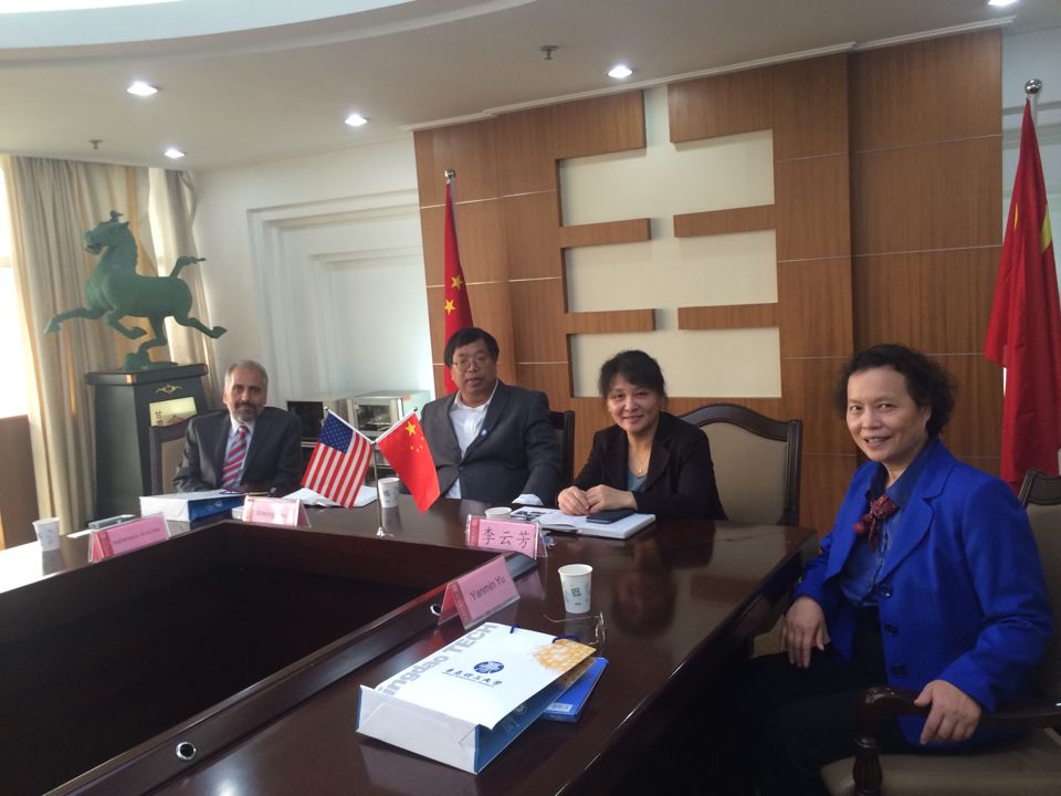 2015年10月23日下午,美国布里奇波特大学中国项目负责人翁新龙博士、大众传媒学系系主任俞燕敏博士一行来我校进行交流访问。国际交流与合作处副处长李云芳热情接待了来访客人。