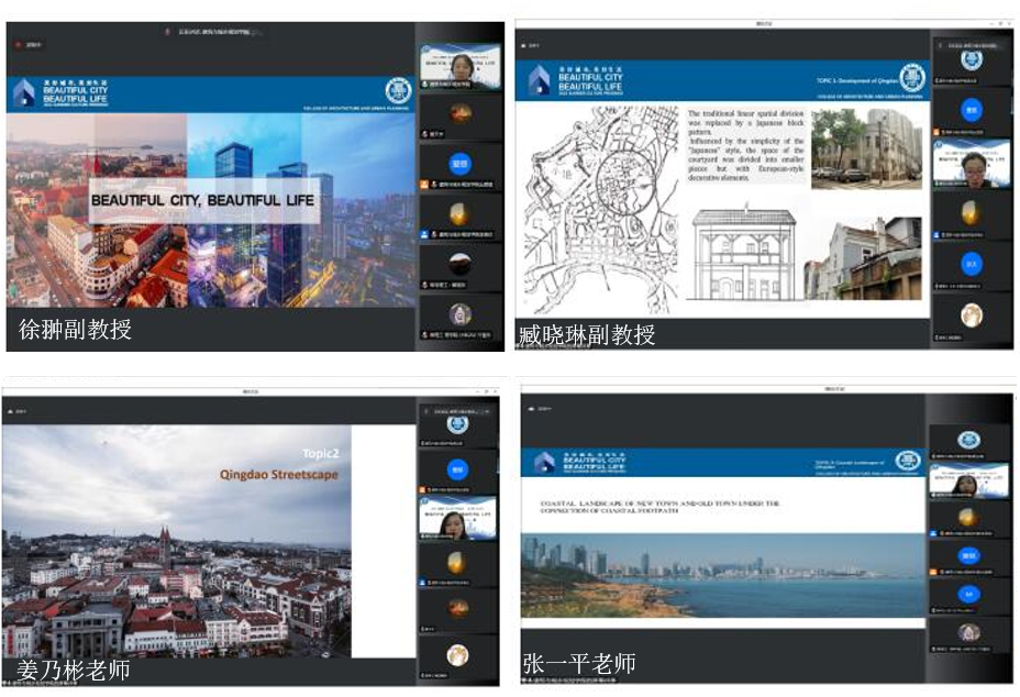 第四场讲座主题为“美丽的城市,美好的生活”,由建筑与城乡规划学院徐翀副教授、臧晓琳副教授、姜乃彬和张一平老师主讲。讲座分别从城市尺度、街道尺度和景观尺度三个方面介绍了青岛的城市建设,展示了学院代表性设计成果及学生竞赛作品,让同学们了解到如何通过规划设计改变城市人居环境。