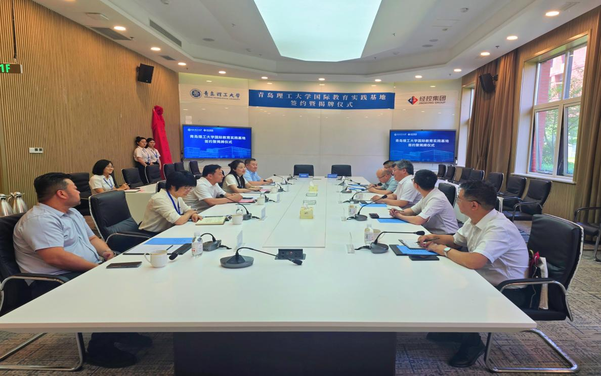 在与会领导的共同见证下,yl34511线路中心处长张鹏与经控集团李克明副总裁代表双方正式签署合作协议。苗吉军与姜伟波共同为“青岛理工大学国际教育实践基地”揭牌。