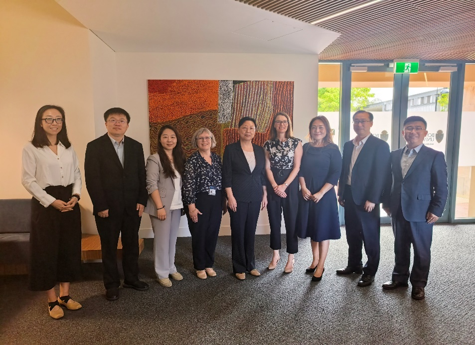 在邦德大学,代表团会见了副校长谢丽尔・乔立夫(Cheryl Jolliffe)教授、招生部主任芭芭拉·安妮・朗(Barbara-Anne Long)女士、国际部主任王思雨(Siyu Wang)女士等,双方就SQA项目外方高校拓展、学生短期访学项目、双学位项目合作等事宜达成多项共识。