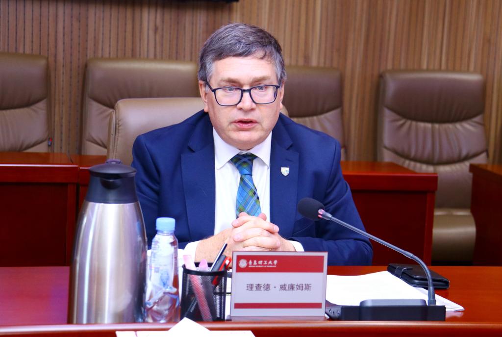 会上,张凯对理查德·威廉姆斯一行的来访表示热烈欢迎,并表示两校在工程领域有相似的学科背景和优势,希望双方不断巩固友好关系,进一步推动在科学研究、教师交流、学生培养等方面开展更深层次的合作。随后,周红燕重点介绍了学校国际化办学相关情况。
