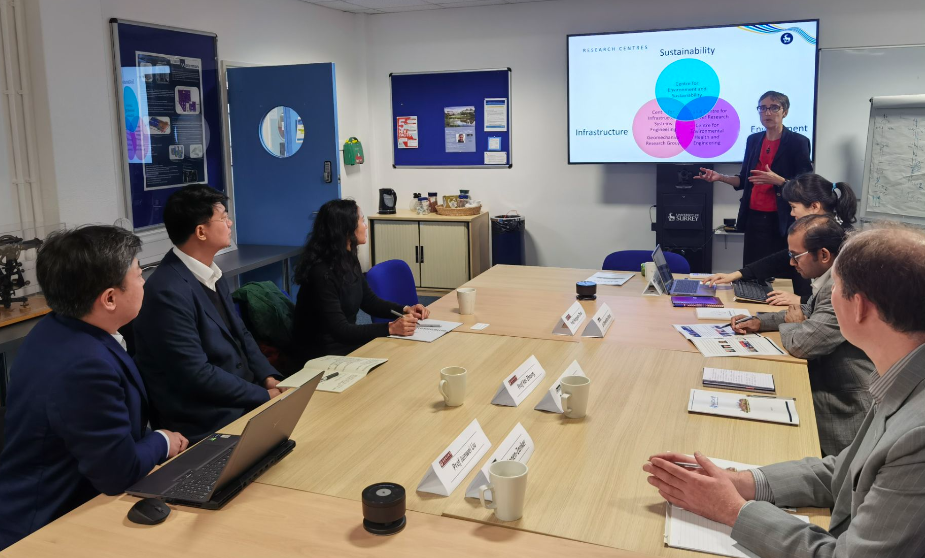 在萨里大学,工学部副主任陈韬(Tao Chen)、土木与环境工程学院院长阿比盖尔·布里斯托(Abigail Bristow)、副院长德万德拉·萨罗伊(Devendra Saroj)、机械学院帕特里克·格鲁伯(Patrick Gruber)教授接待了我校代表团,双方确定了将开展土木工程专业多种模式的“本+硕”双学位联合培养模式,就机械工程专业学生的联合培养进行了交流,并达成共识。